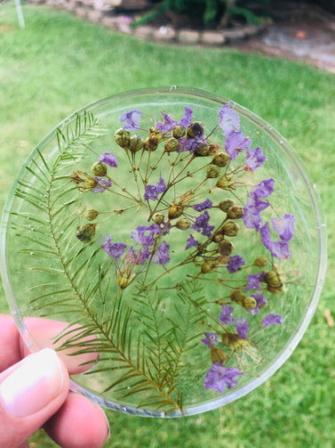 Beautiful simple gorgeous floral coasters made with real flowers and vegetation. Get a bit of flora/nature into your home, kitchen or bar.